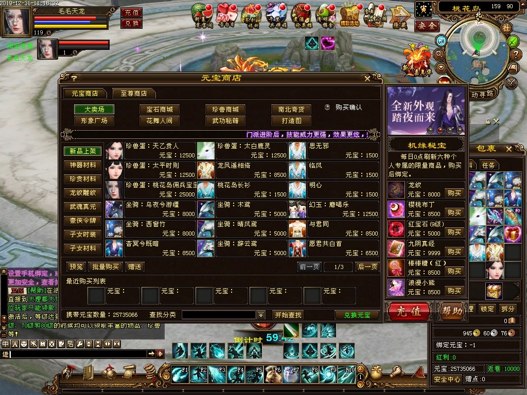 最终版更新介绍:1.众所周知,万象版本加入门派之后所有心法是1级,群体技能没有,大理城加入门派都同步了仿官,上次是门派场景内加入门派会是10级,这次大理加入门派的心法修改了,不用跑到门派内再加门派。(注:新门派桃花岛所有心法为1级这个没改)2.新加桃花岛门派,桃花岛4件时装,桃花岛3大坐骑,桃花岛佣兵宝宝,等等。3.新加装备,齐天大圣套装,属性与真重楼相比较好4.更新装备8星橙色品质仿制重楼,上次修改的8星是蓝色品质,这次改为橙色品质9条属性。升级都可领取5.新加绝世神器:神·如意金箍棒获取方式VIP商店免费获取。6.修改8星仿制重楼戒,玉为官方召,归重楼图标。7.新幻世武器登场,这里不一一介绍了8.全局经验修改为5倍,之前为了后面升级加速改成10级后发现,前期做个打怪任务就10级了,大大影响了仿官玩法。这里就不一一讲解了。