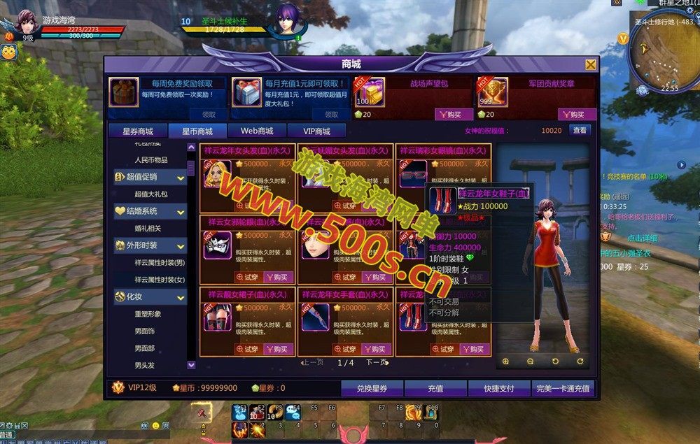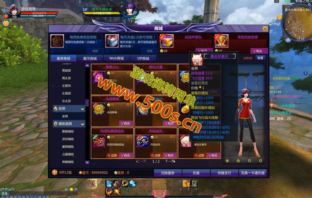 更新1:圣衣开放至270套,添加大量装备、时装和守护星,所有装备5000体力,