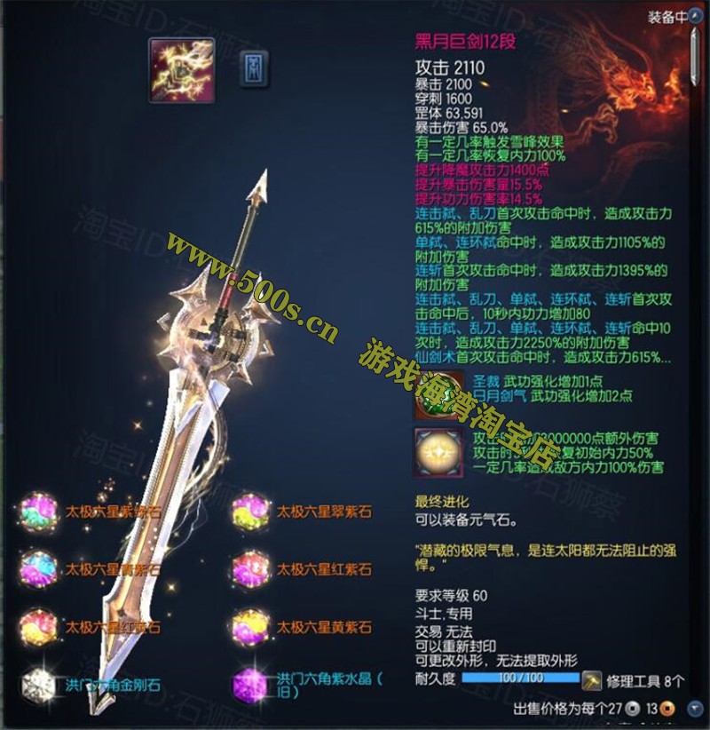 最新宝端剑灵S3黑月武器,可跨服,可局域网整理版