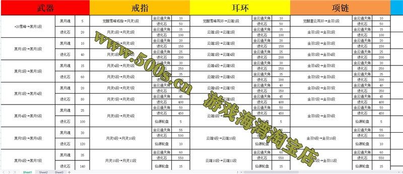 1.新增黑月首饰(项链,耳环,戒指) 1~12段有进化树全新材料升级