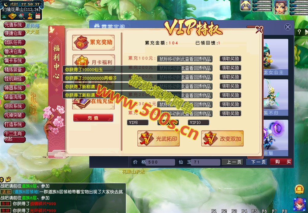 8000W经验,新手装备,凤鸣之冠(拖动进锦衣里佩戴),梦境玉佩(直接佩戴)