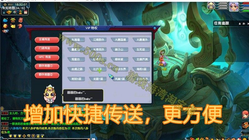 6、增加快捷传送,可传送师门。主城、NPC、野外地图等