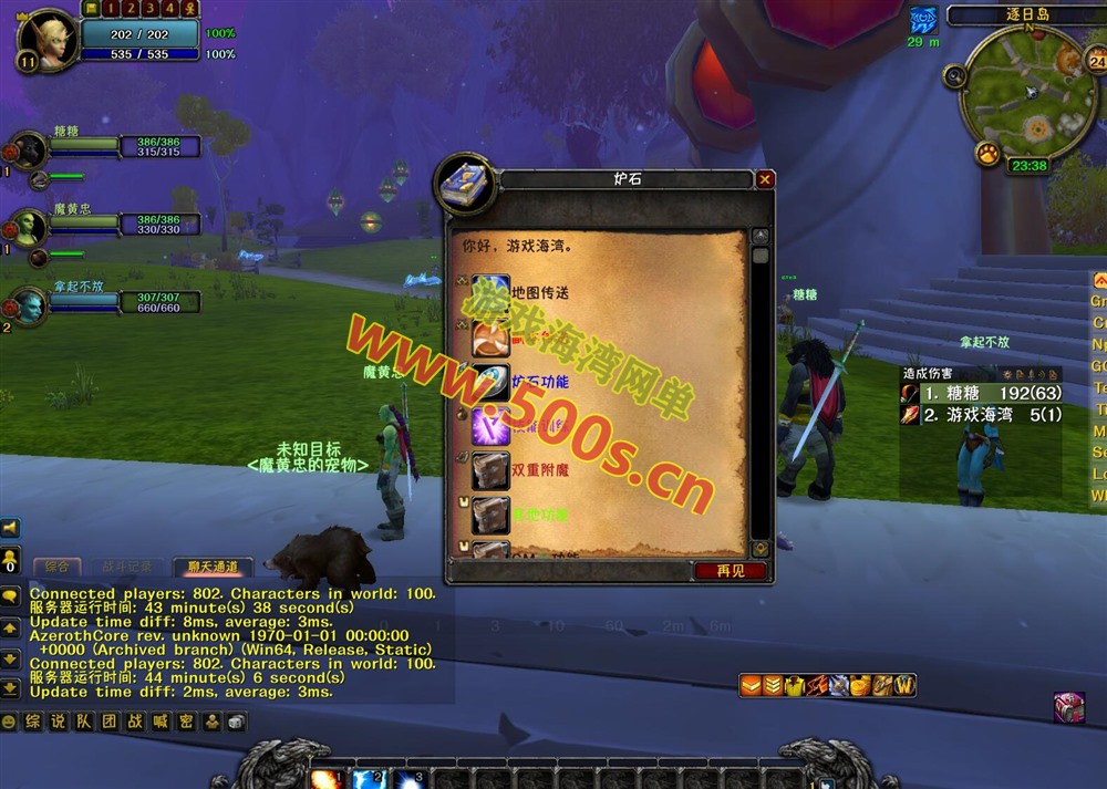 2、此端特色就 机器人控制功能非常丰富,换装,换天赋,副本走位等等,T和远程都配合的非常